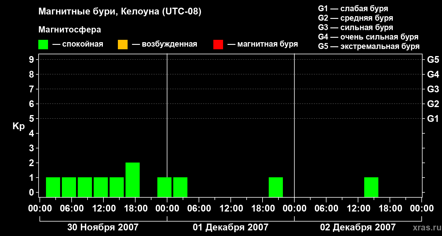 Магнитные бури в Келоуне — 2 декабря 2007 года