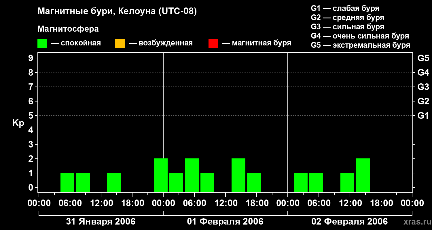 Магнитные бури в Келоуне 2 февраля 2006 года