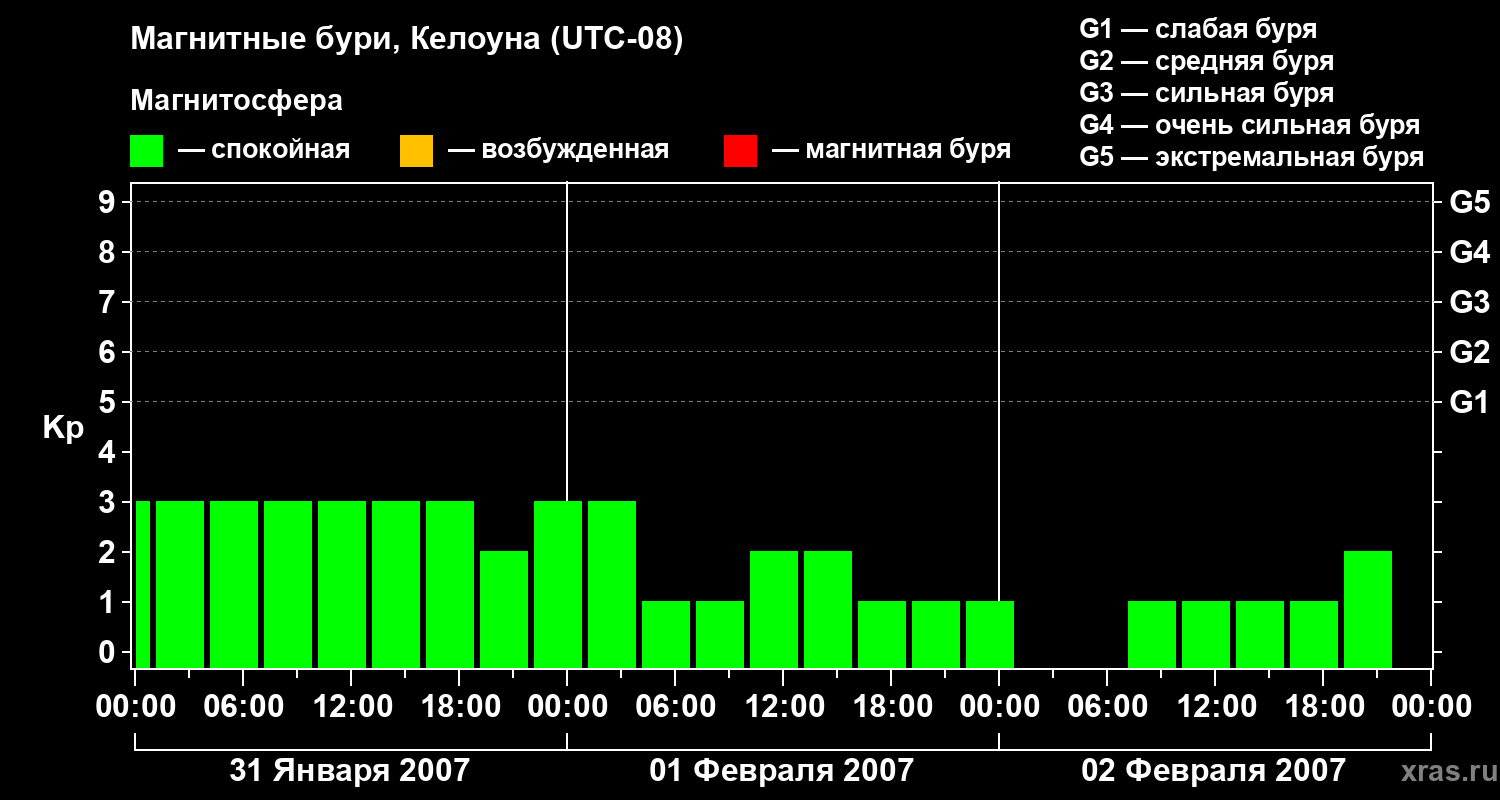 Магнитные бури в Келоуне 2 февраля 2007 года