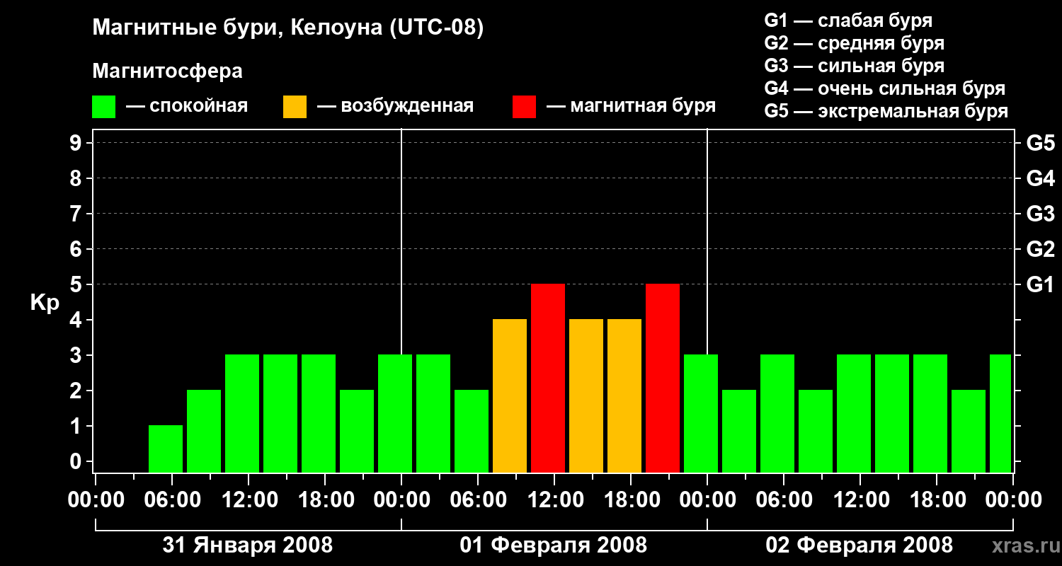 Магнитные бури в Келоуне — 2 февраля 2008 года
