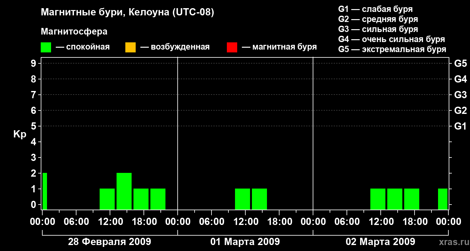 Магнитные бури в Келоуне — 2 марта 2009 года