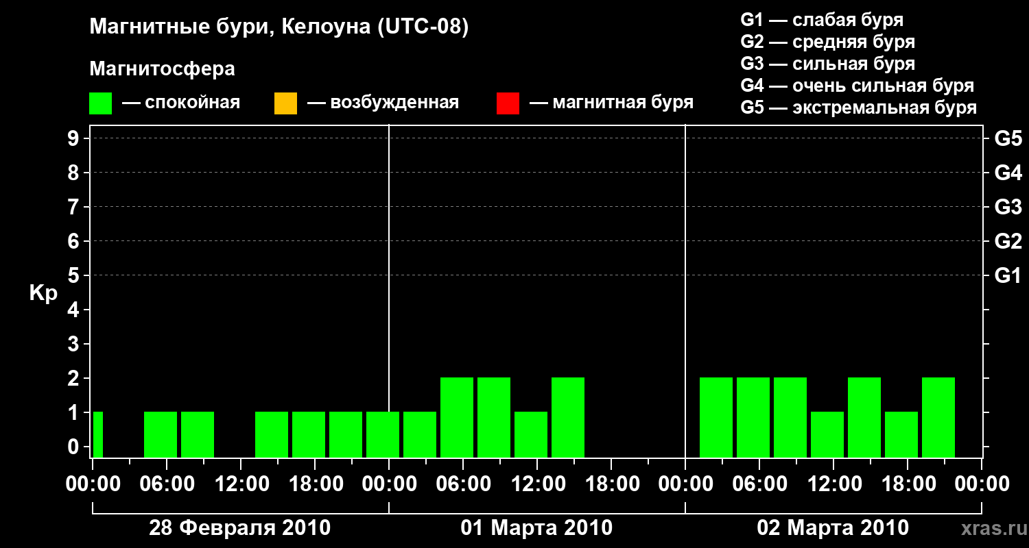 Магнитные бури в Келоуне — 2 марта 2010 года
