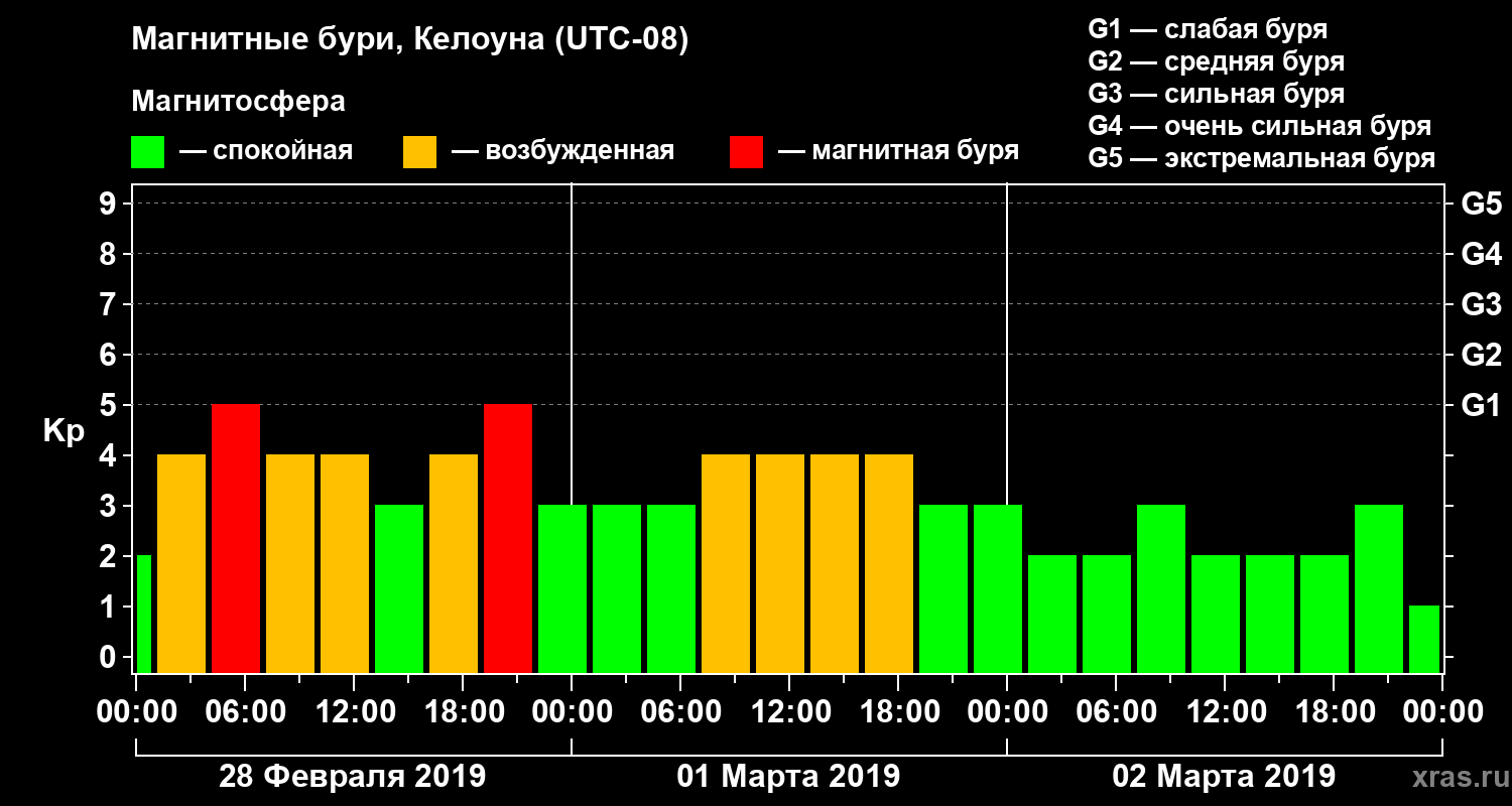 Магнитные бури в Келоуне — 2 марта 2019 года