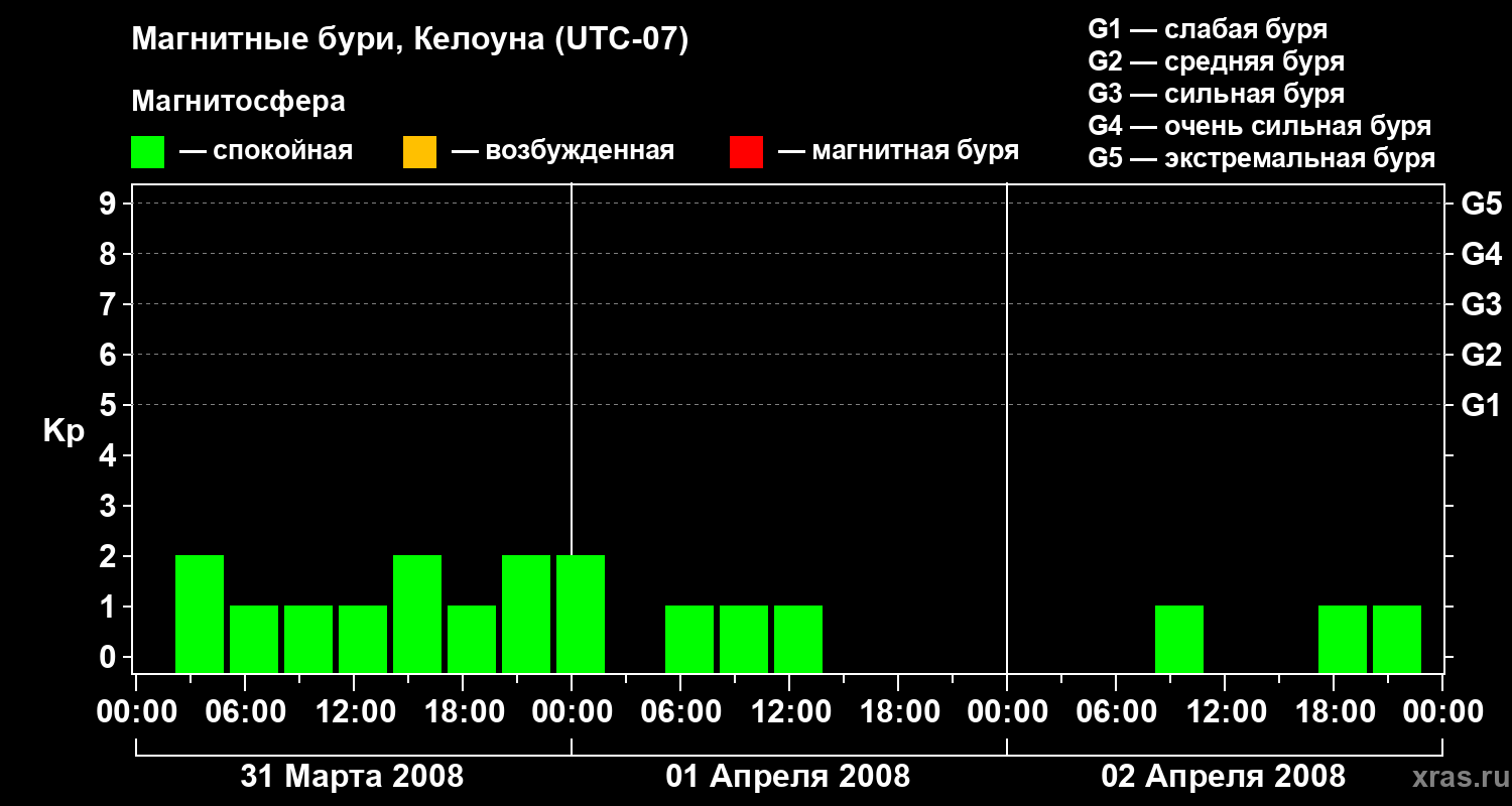 Магнитные бури в Келоуне 2 апреля 2008 года