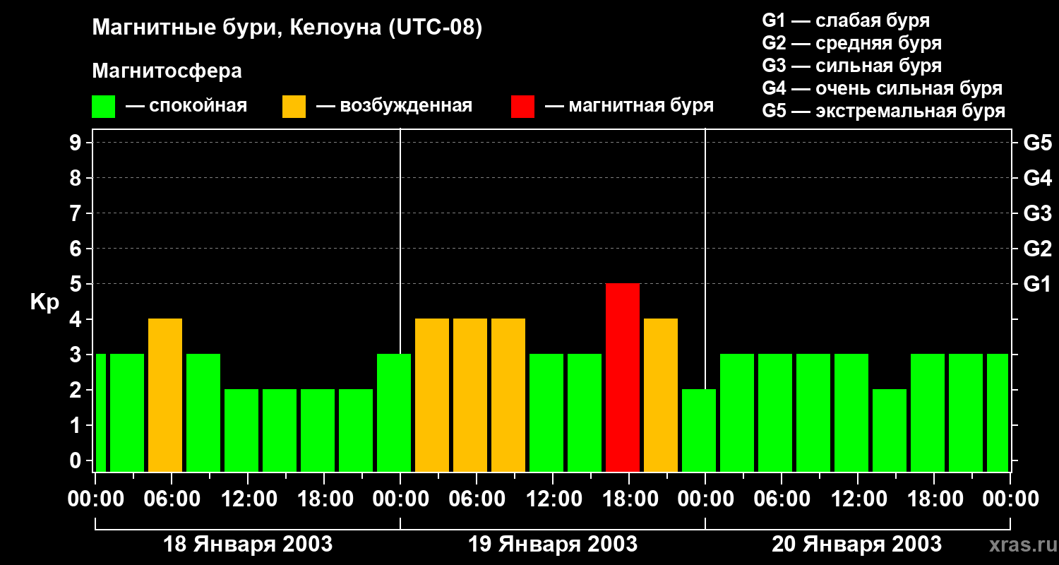 Магнитные бури в Келоуне — 20 января 2003 года