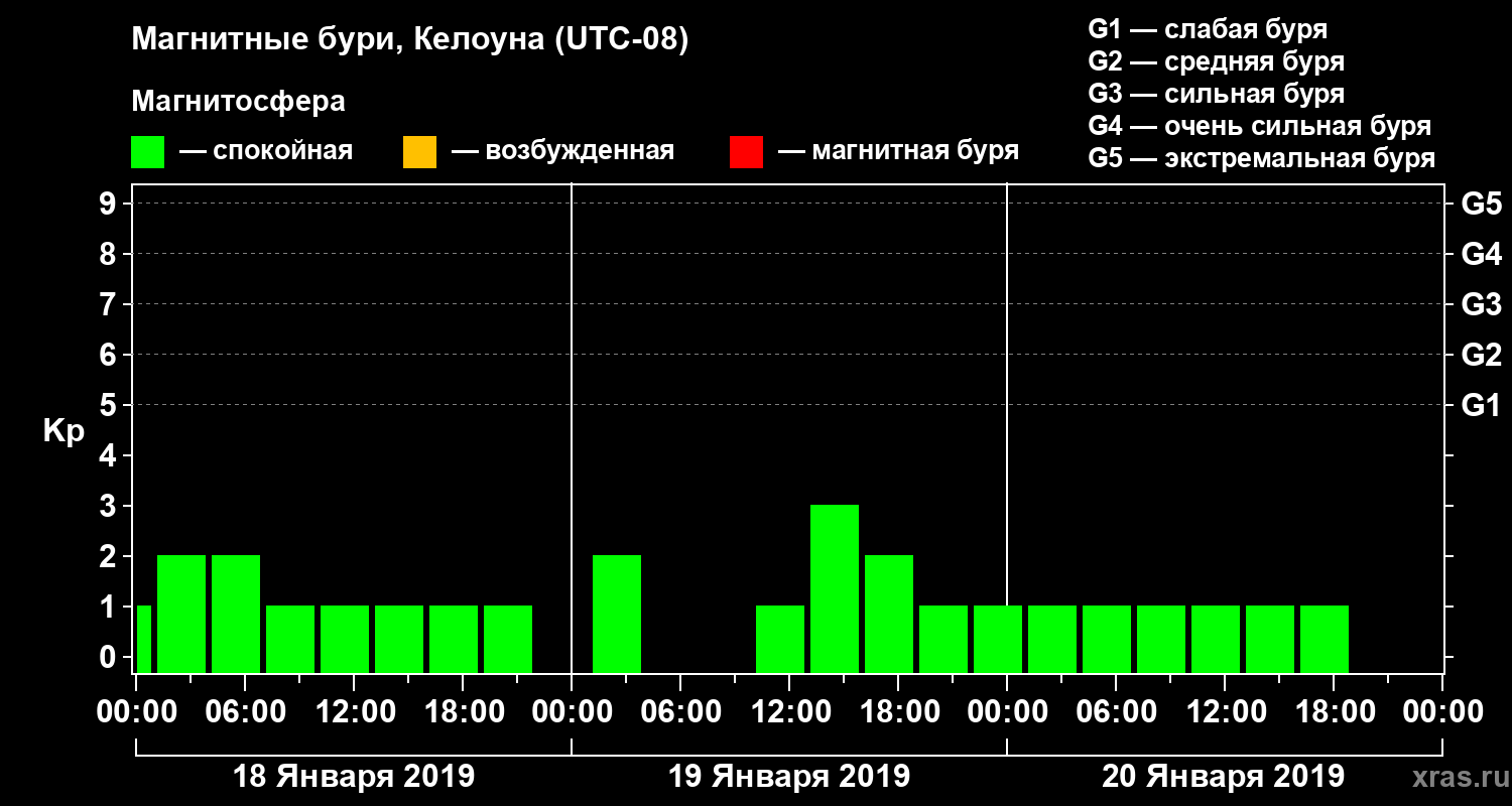 Магнитные бури в Келоуне 20 января 2019 года