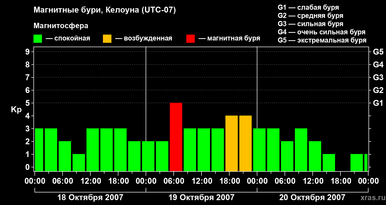 Магнитные бури в Келоуне — 20 октября 2007 года