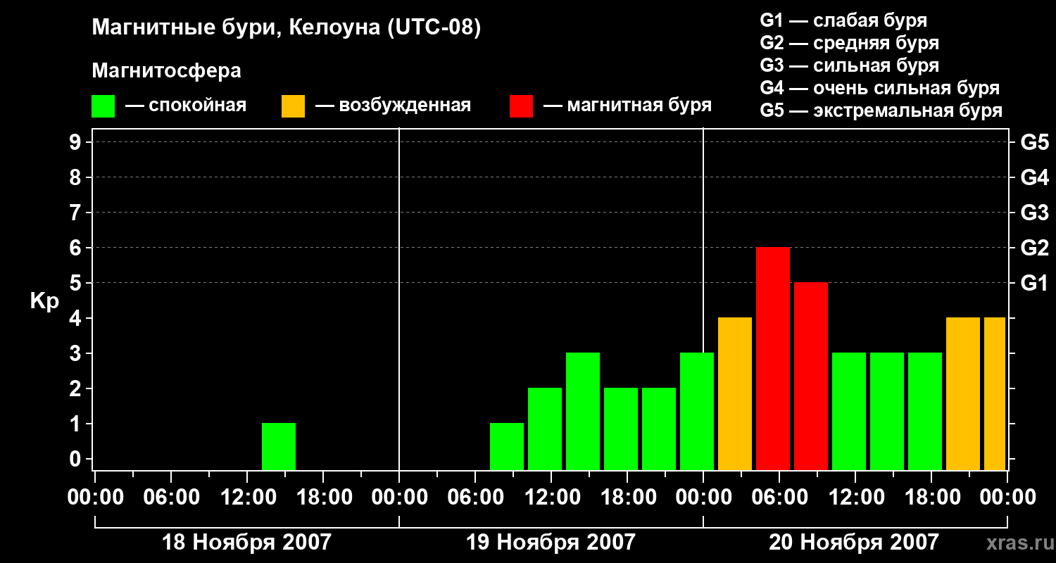 Магнитные бури в Келоуне — 20 ноября 2007 года