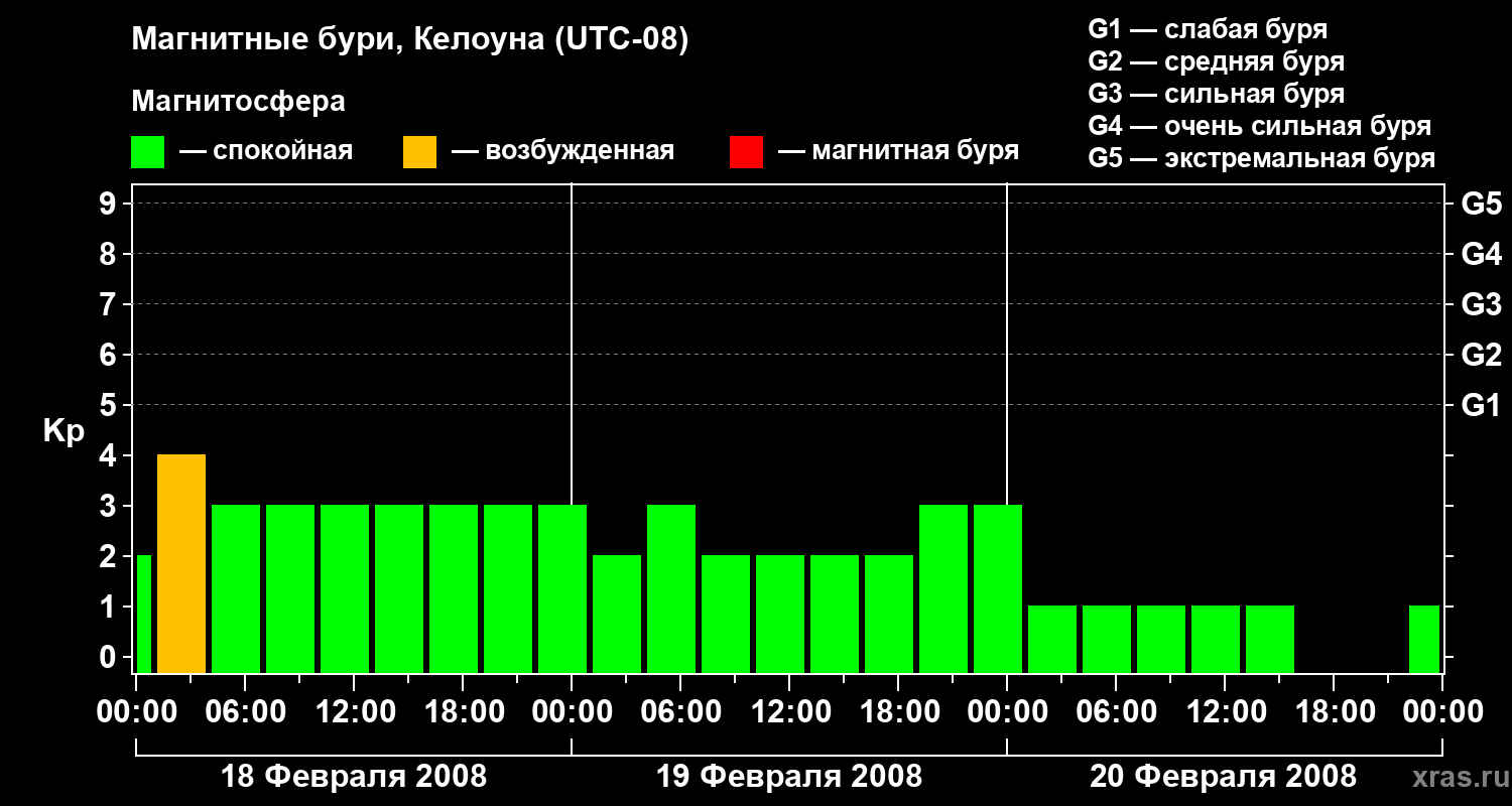 Магнитные бури в Келоуне — 20 февраля 2008 года