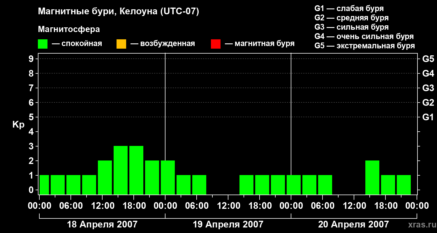 Магнитные бури в Келоуне — 20 апреля 2007 года