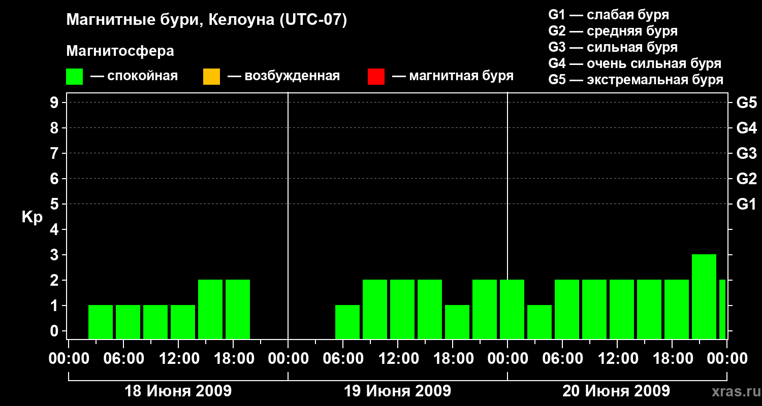 Магнитные бури в Келоуне — 20 июня 2009 года
