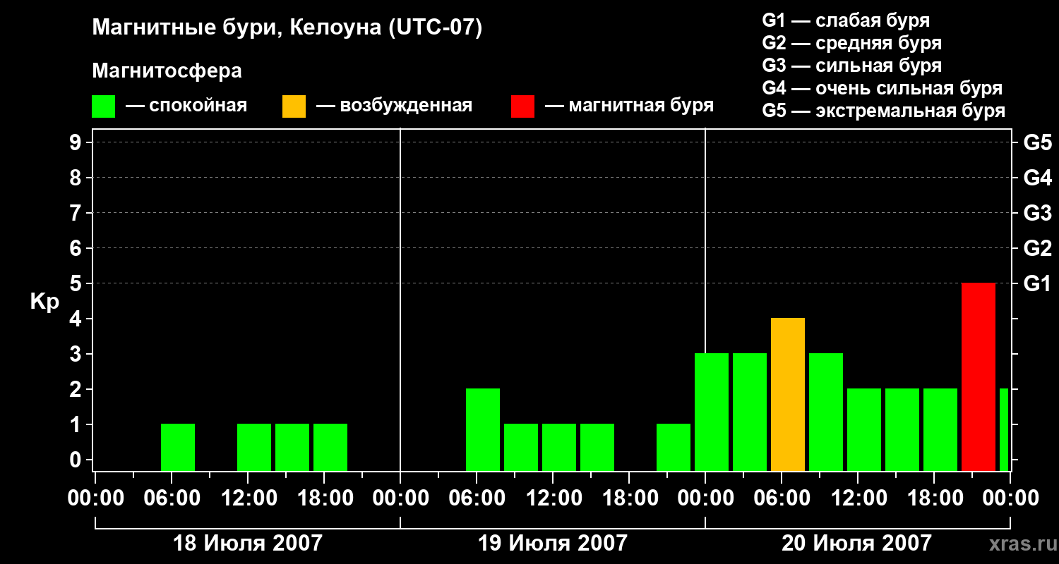 Магнитные бури в Келоуне — 20 июля 2007 года