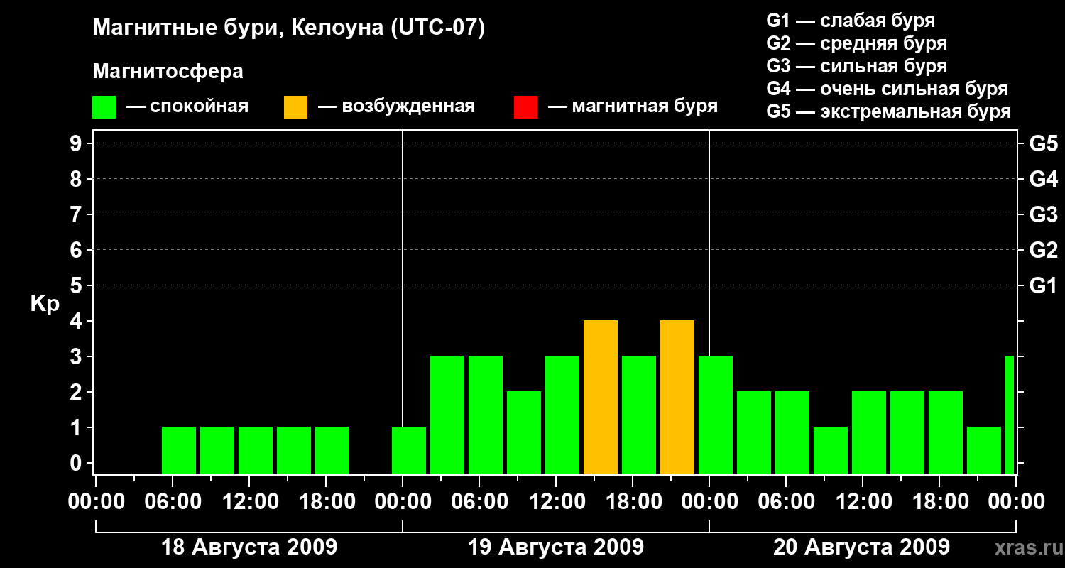Магнитные бури в Келоуне — 20 августа 2009 года