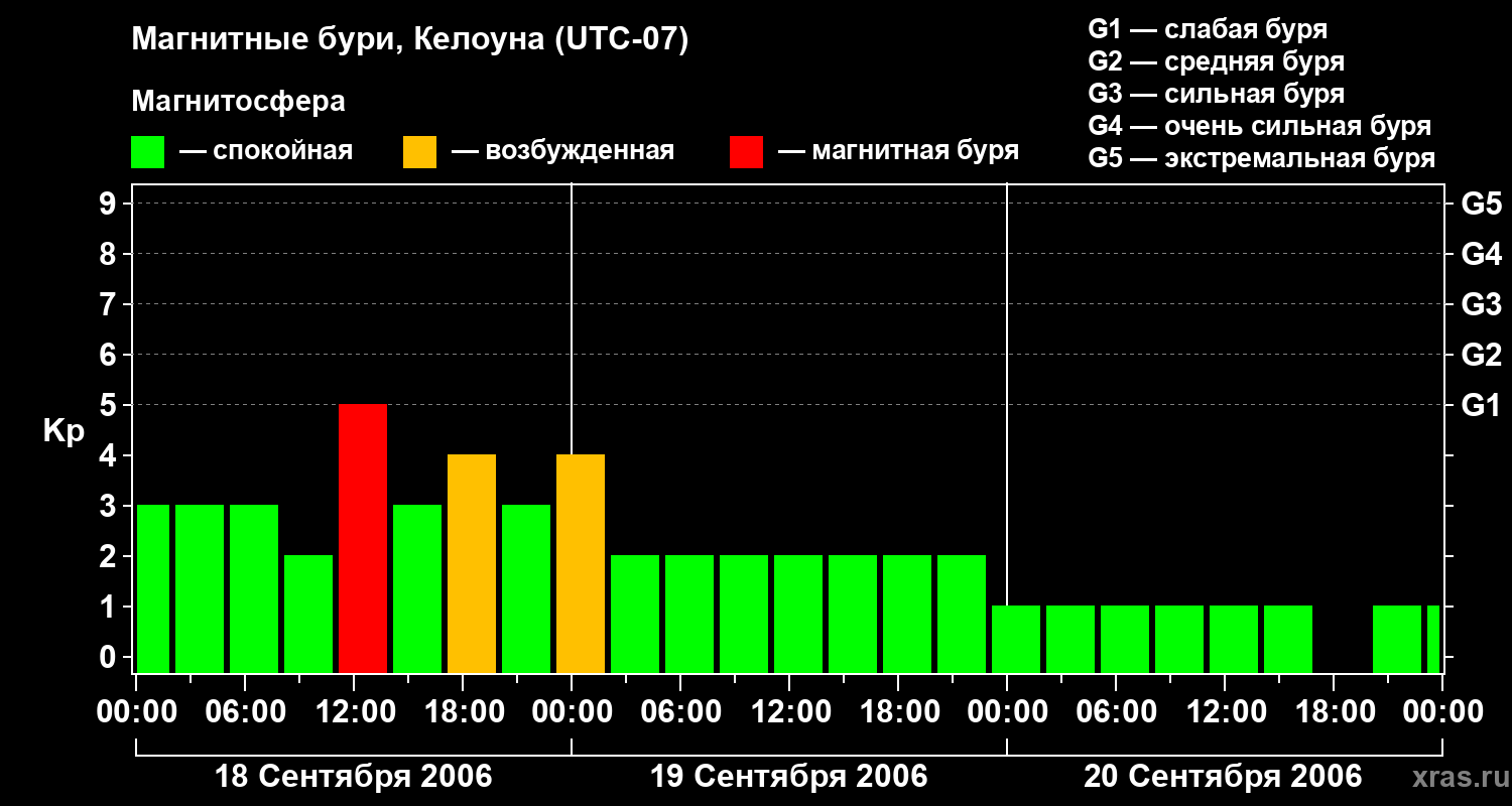 Магнитные бури в Келоуне 20 сентября 2006 года