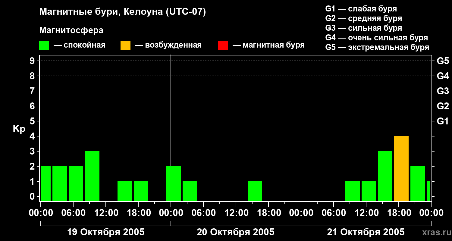 Магнитные бури в Келоуне — 21 октября 2005 года