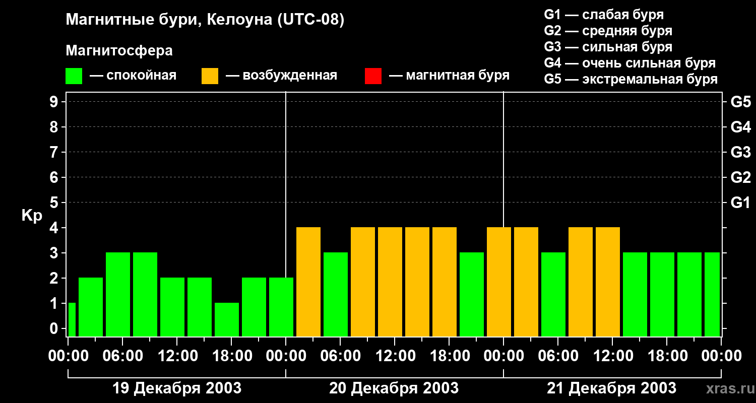 Магнитные бури в Келоуне — 21 декабря 2003 года