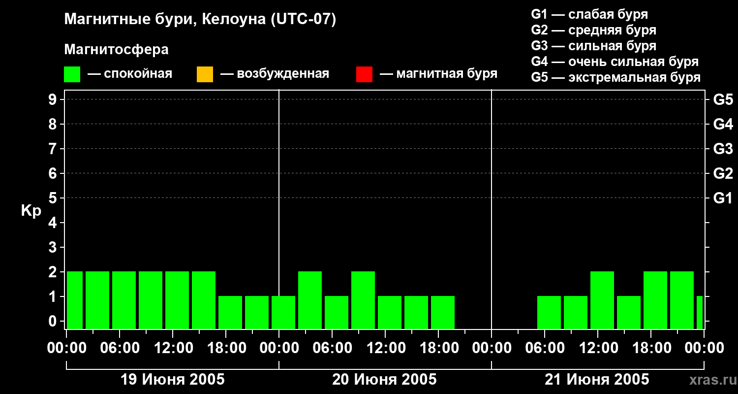 Магнитные бури в Келоуне — 21 июня 2005 года