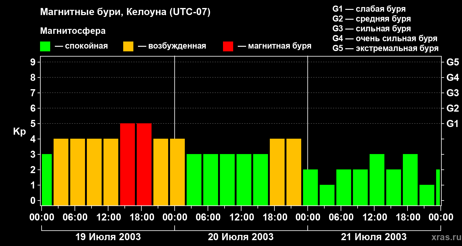 Магнитные бури в Келоуне — 21 июля 2003 года