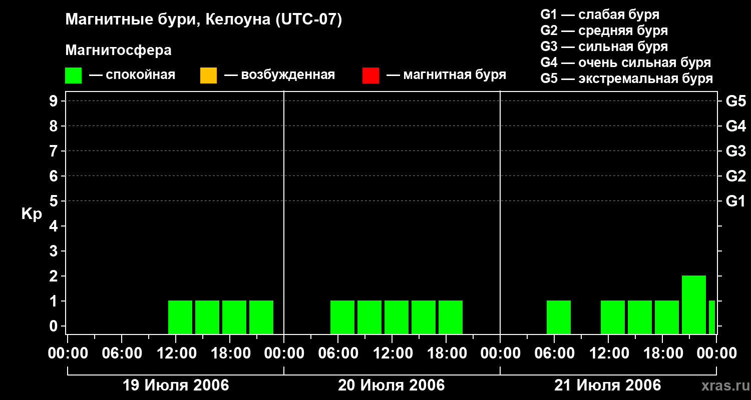 Магнитные бури в Келоуне — 21 июля 2006 года
