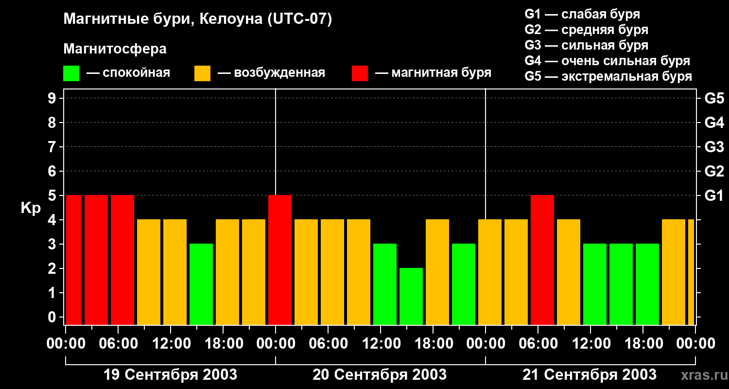 Магнитные бури в Келоуне — 21 сентября 2003 года