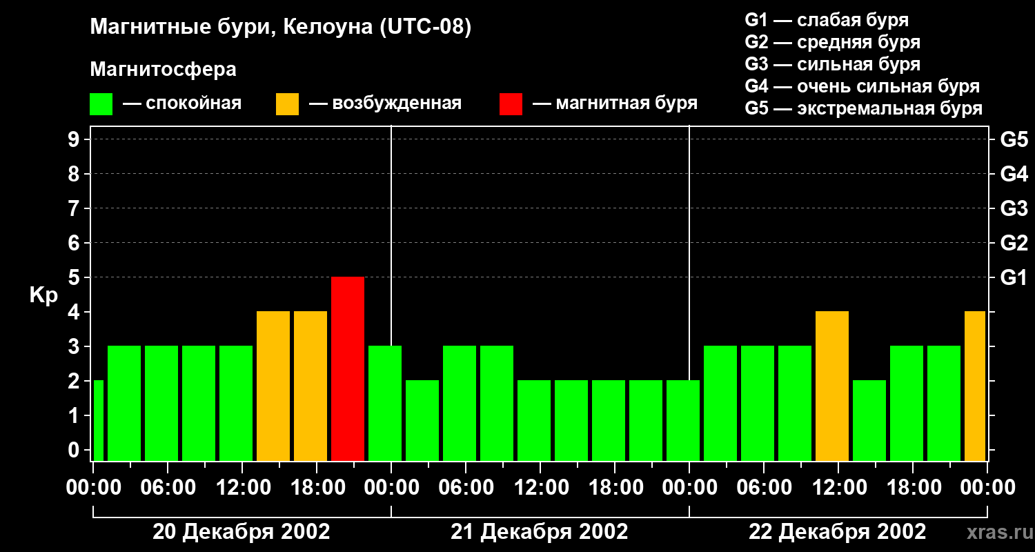 Магнитные бури в Келоуне — 22 декабря 2002 года