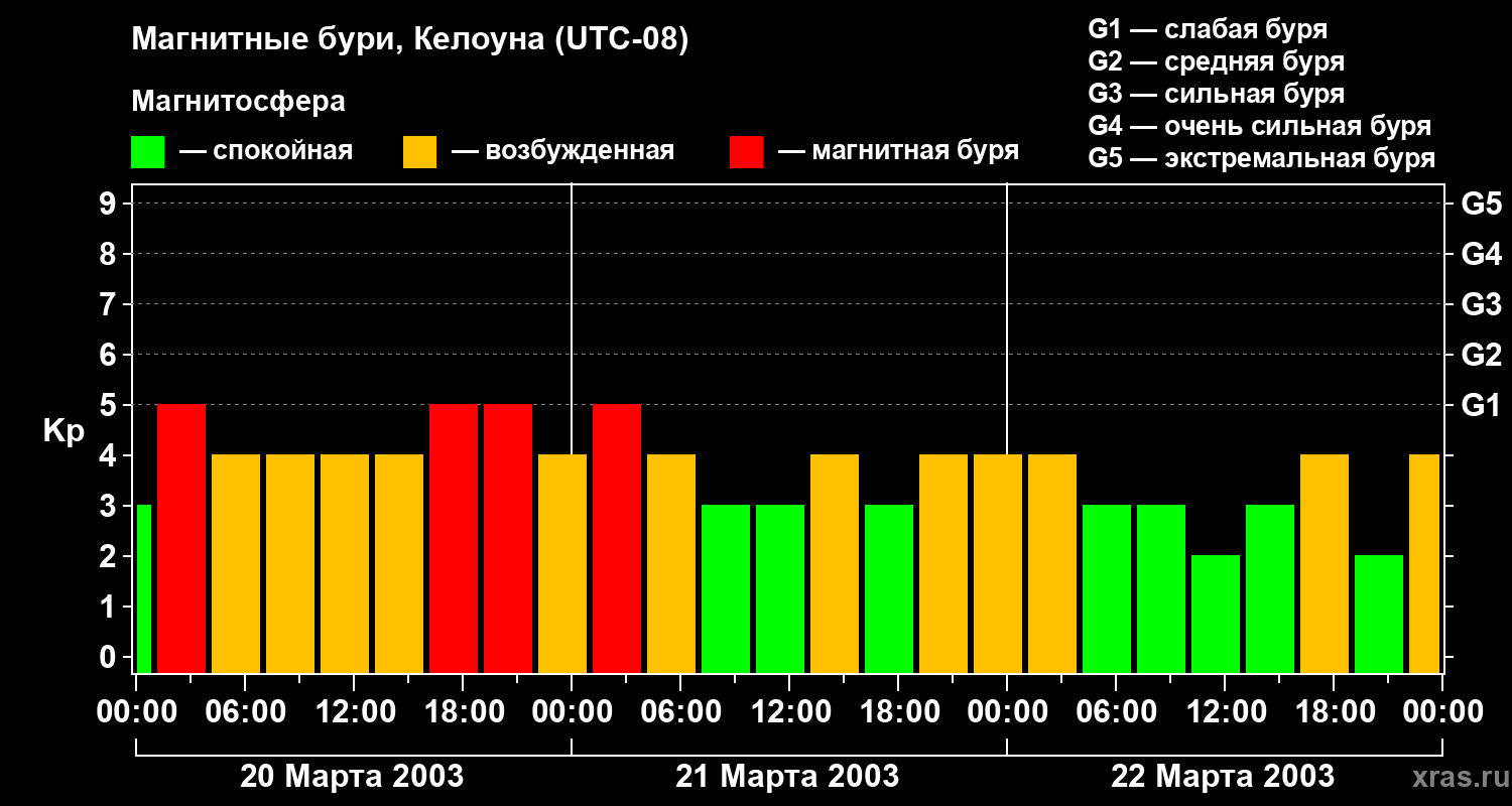 Магнитные бури в Келоуне — 22 марта 2003 года