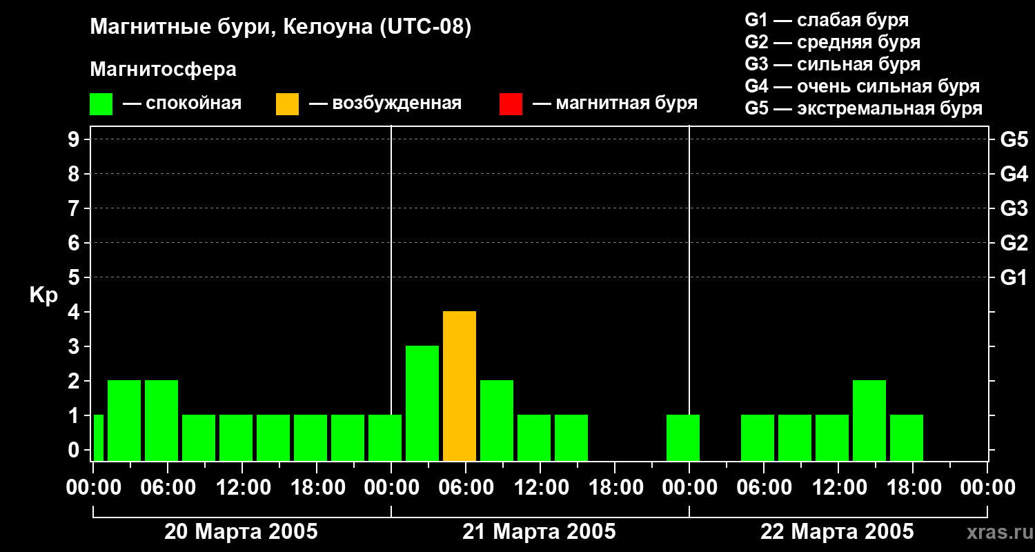 Магнитные бури в Келоуне — 22 марта 2005 года
