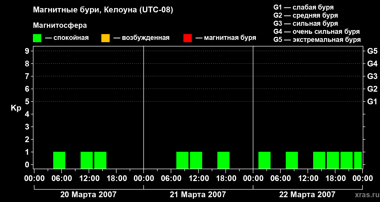 Магнитные бури в Келоуне — 22 марта 2007 года