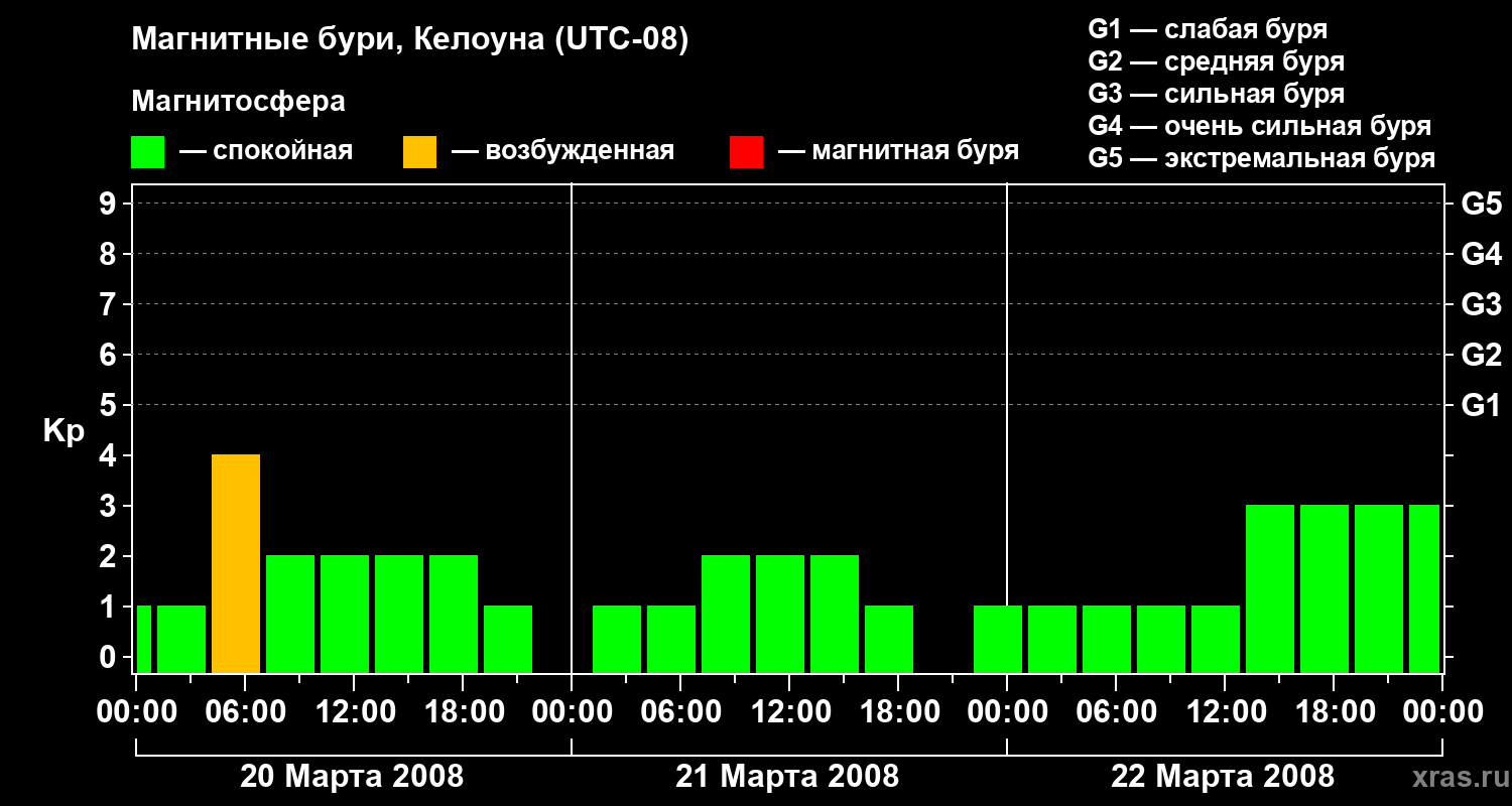 Магнитные бури в Келоуне — 22 марта 2008 года