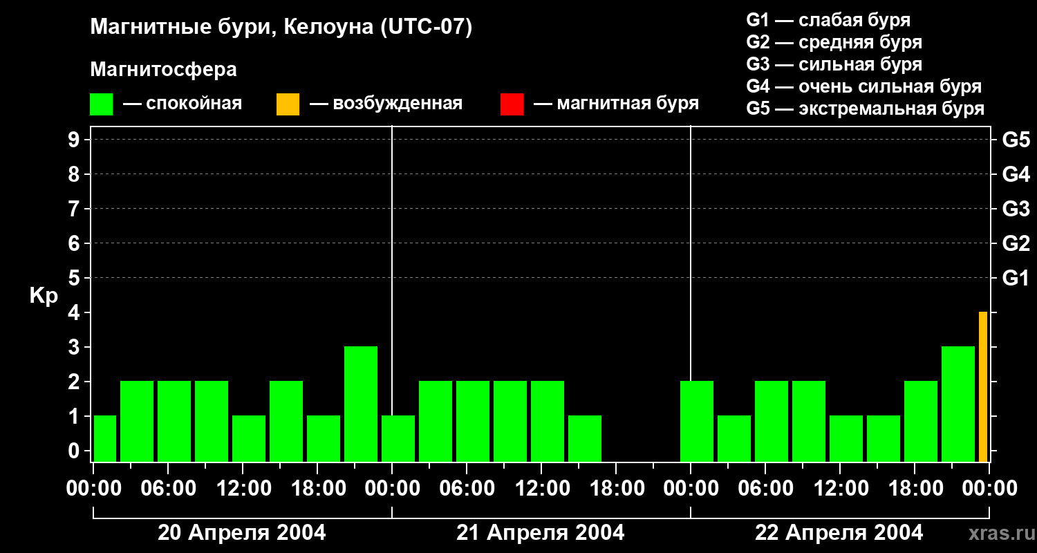 Магнитные бури в Келоуне — 22 апреля 2004 года