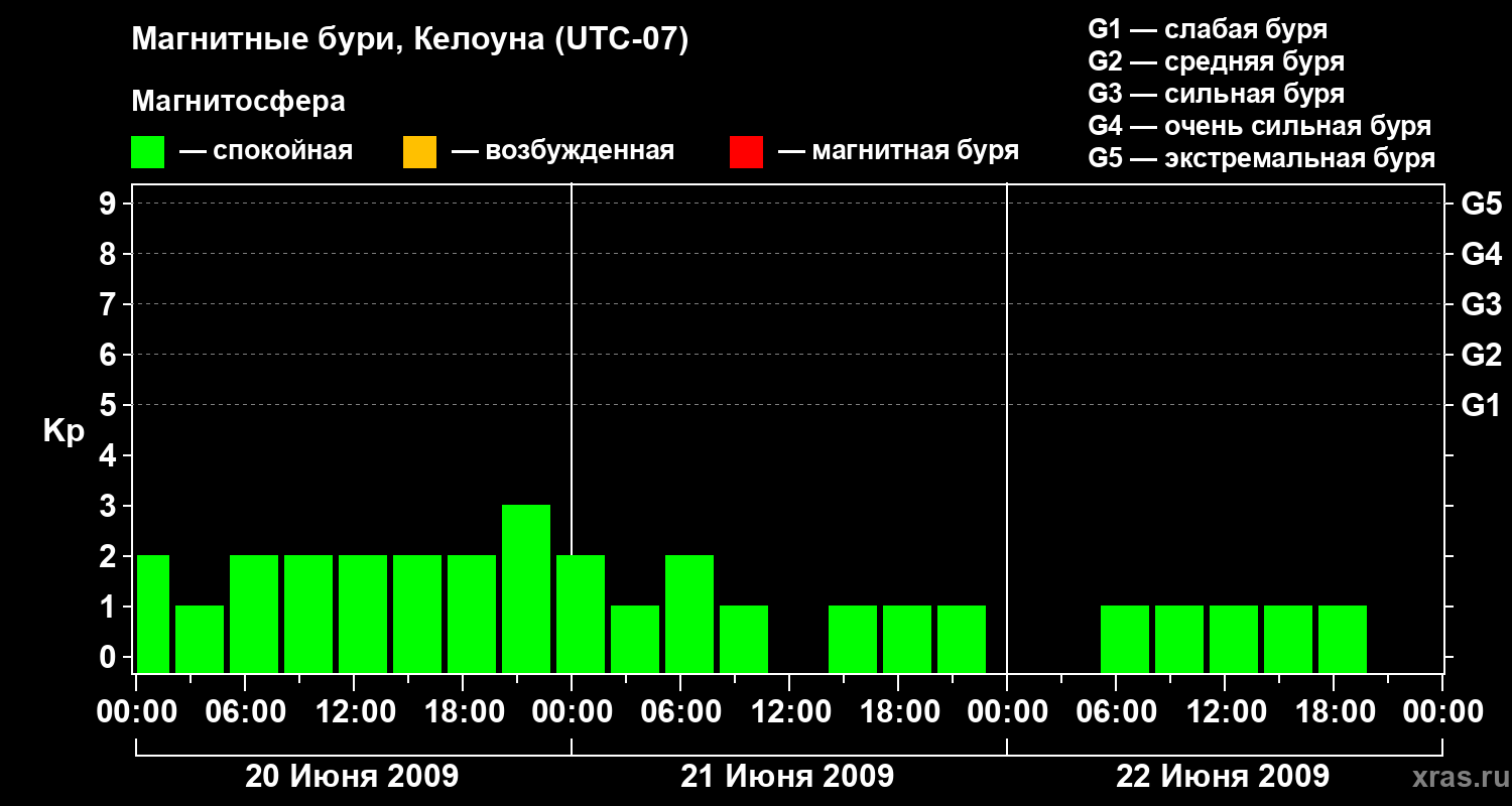Магнитные бури в Келоуне — 22 июня 2009 года