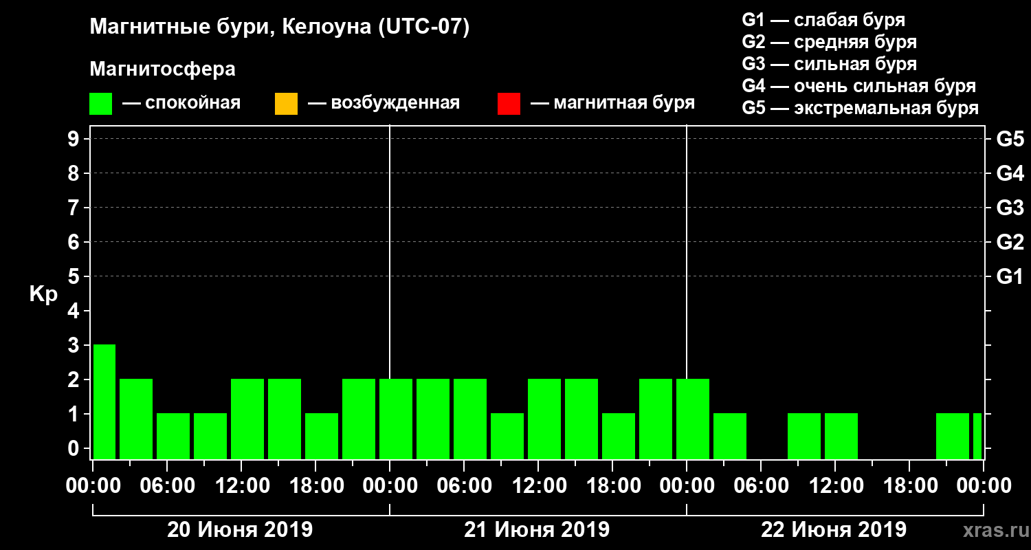 Магнитные бури в Келоуне — 22 июня 2019 года