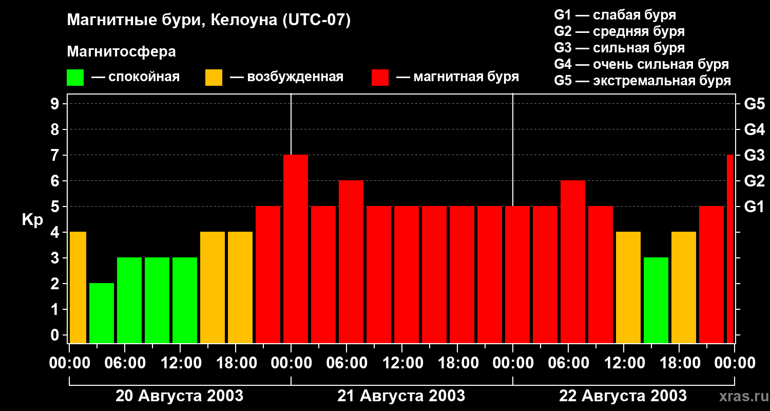 Магнитные бури в Келоуне — 22 августа 2003 года