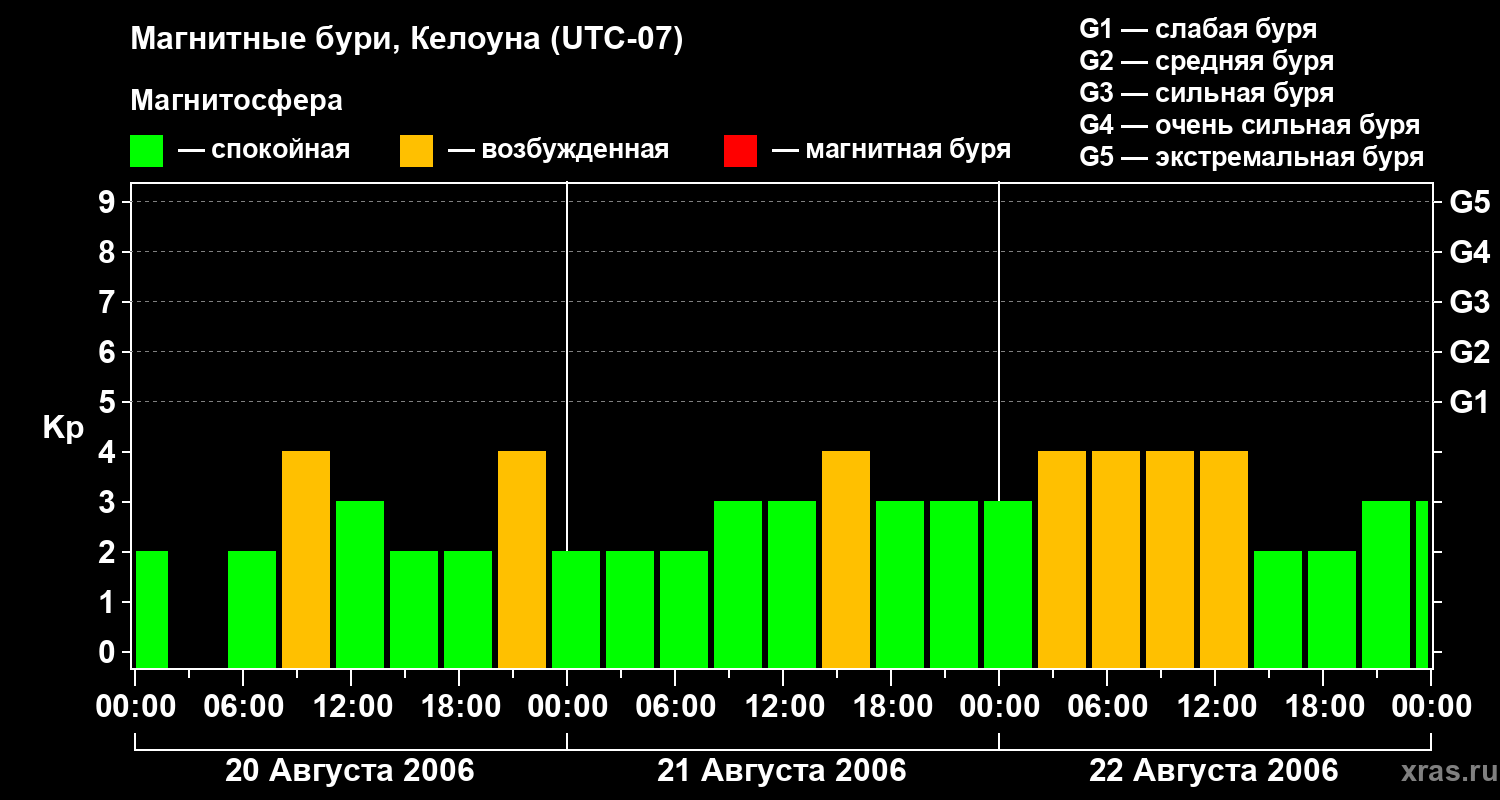 Магнитные бури в Келоуне — 22 августа 2006 года