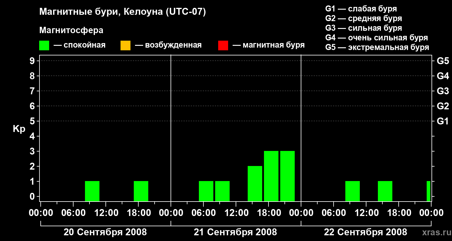 Магнитные бури в Келоуне 22 сентября 2008 года