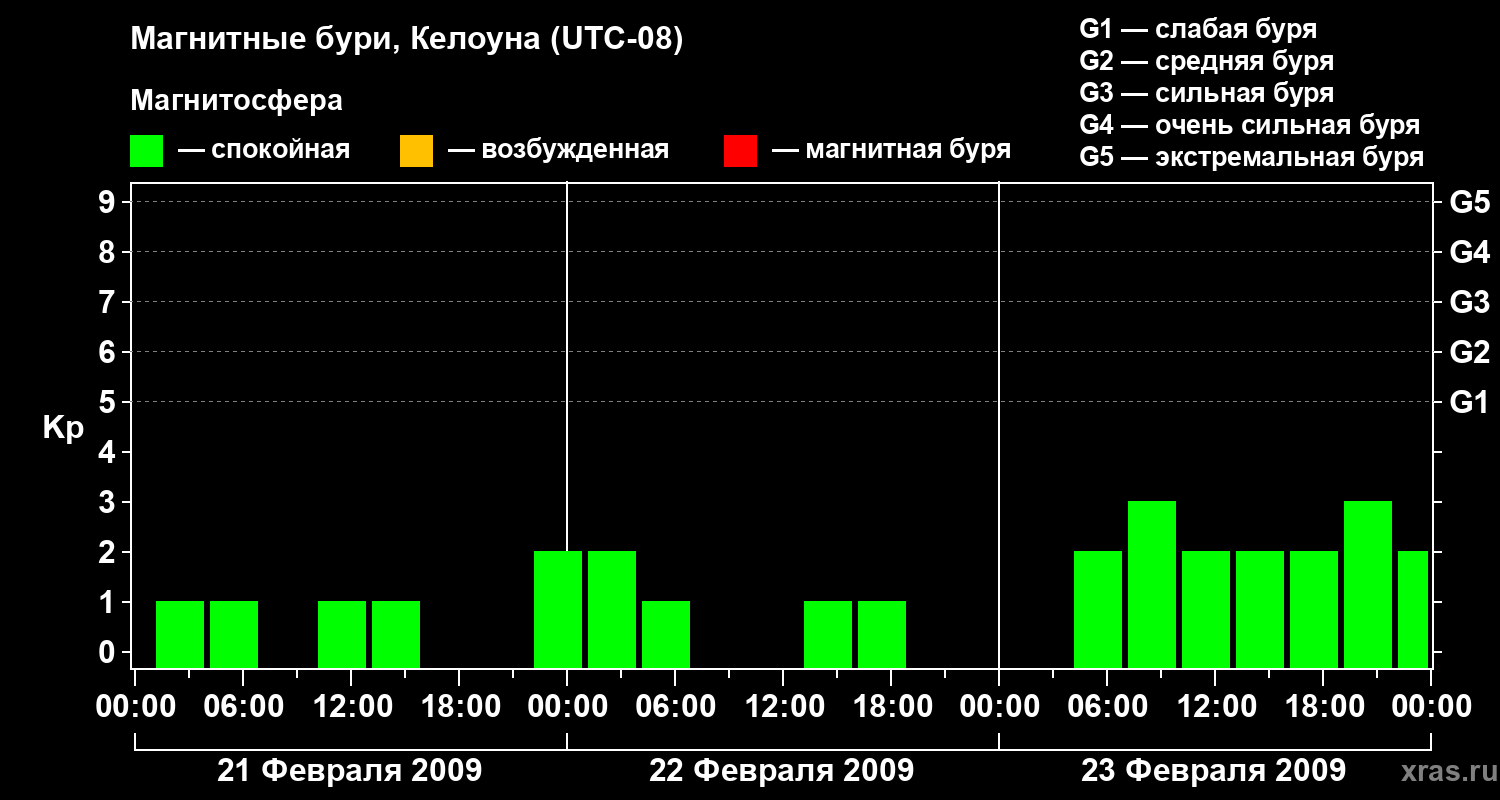 Магнитные бури в Келоуне — 23 февраля 2009 года