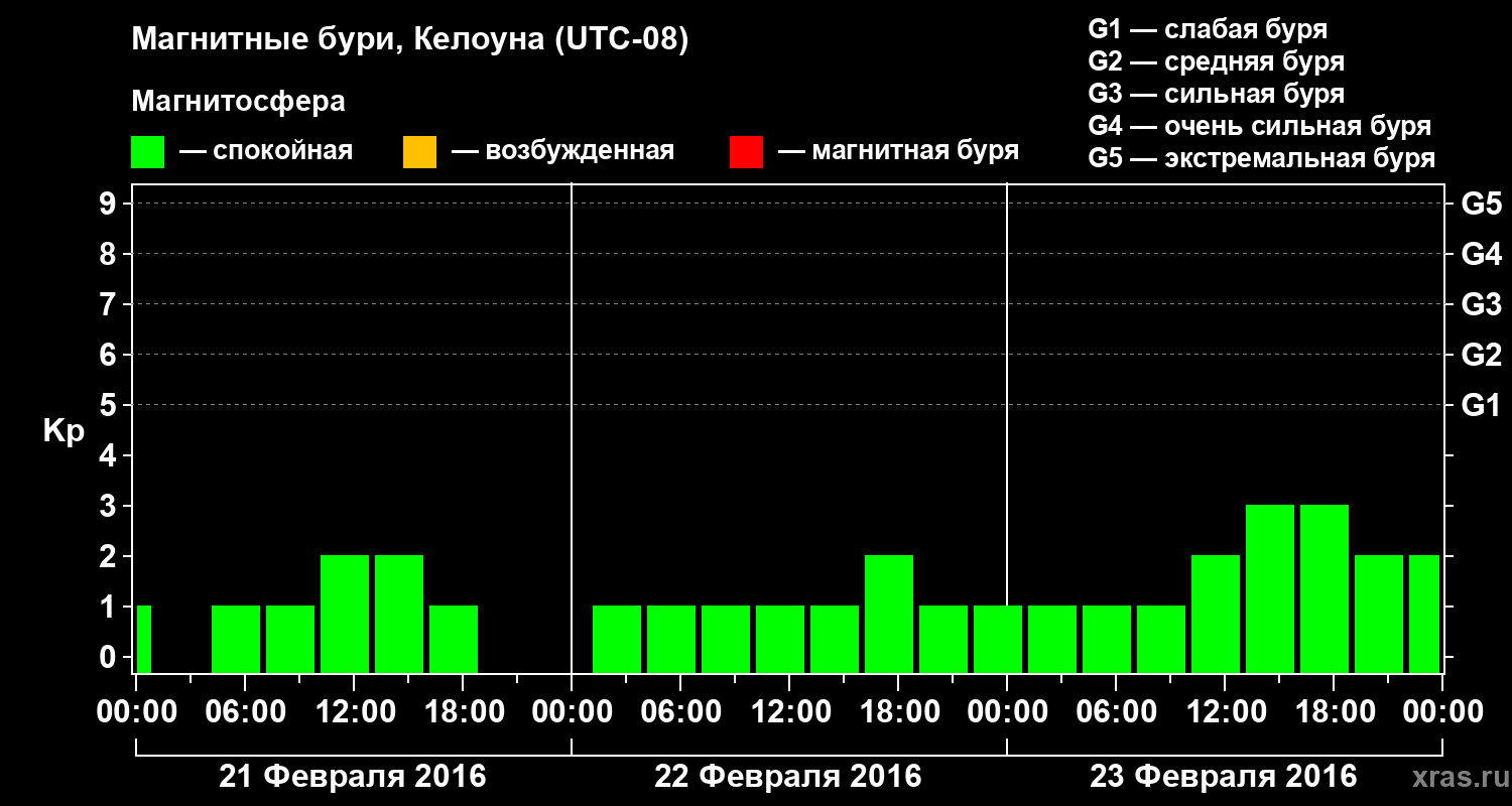 Магнитные бури в Келоуне 23 февраля 2016 года