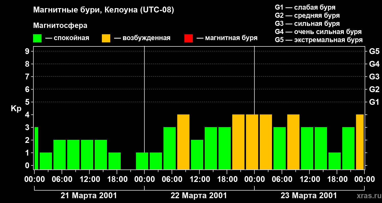 Магнитные бури в Келоуне — 23 марта 2001 года