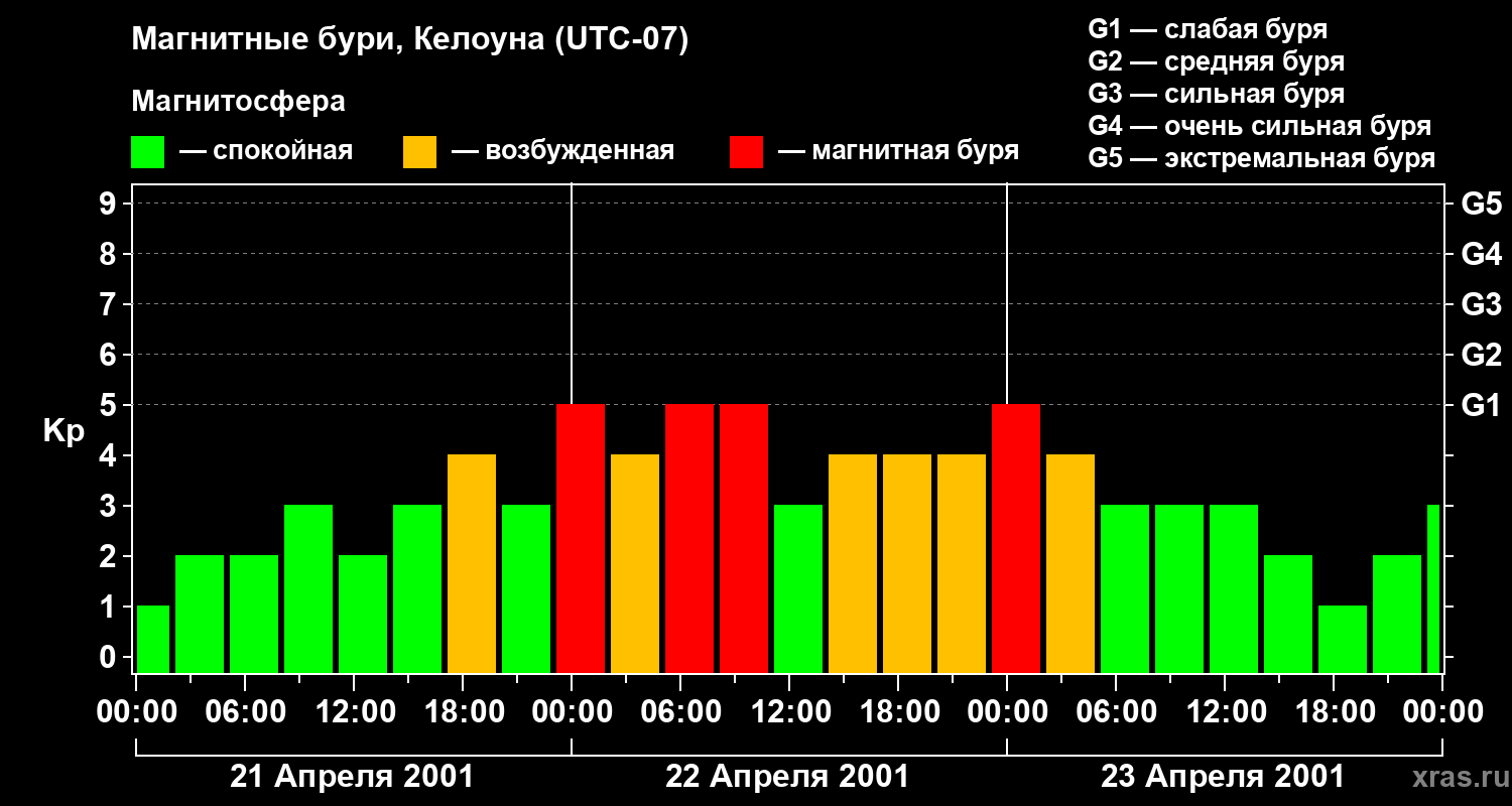 Магнитные бури в Келоуне — 23 апреля 2001 года
