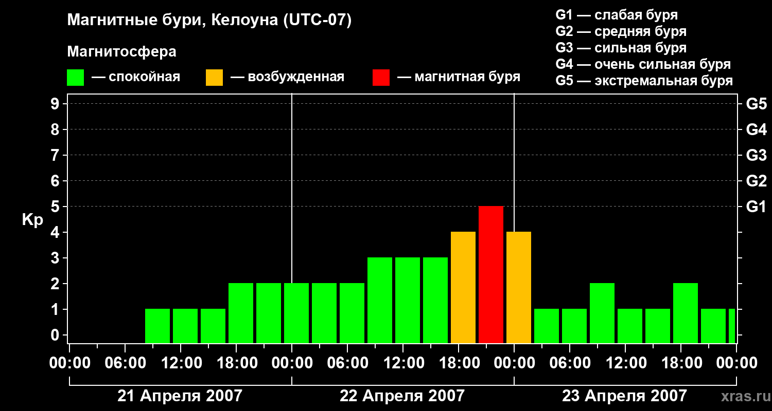Магнитные бури в Келоуне — 23 апреля 2007 года