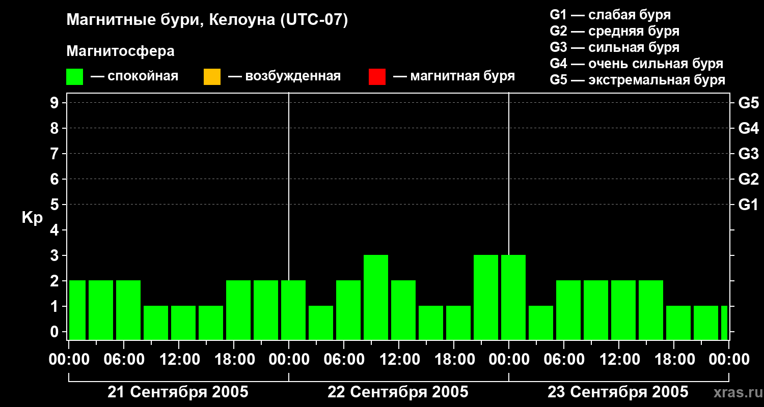 Магнитные бури в Келоуне 23 сентября 2005 года