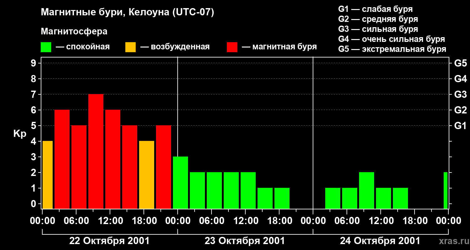 Магнитные бури в Келоуне — 24 октября 2001 года