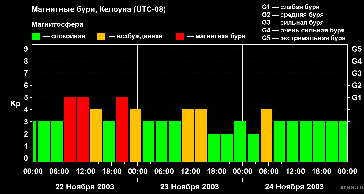 Магнитные бури в Келоуне — 24 ноября 2003 года