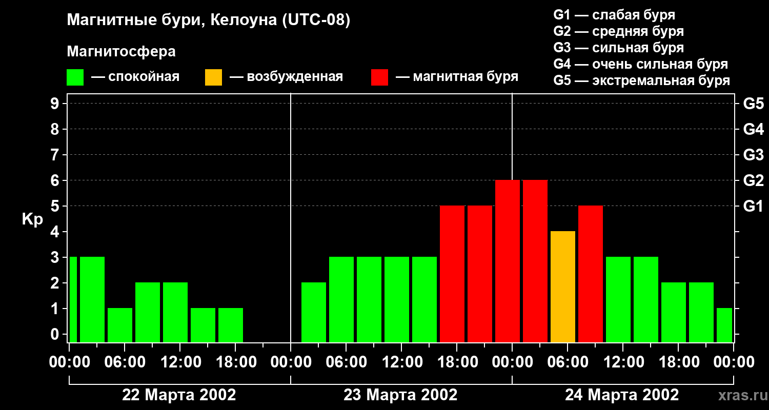 Магнитные бури в Келоуне — 24 марта 2002 года