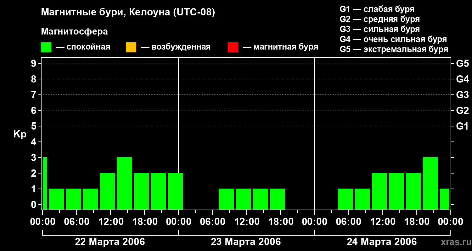 Магнитные бури в Келоуне — 24 марта 2006 года
