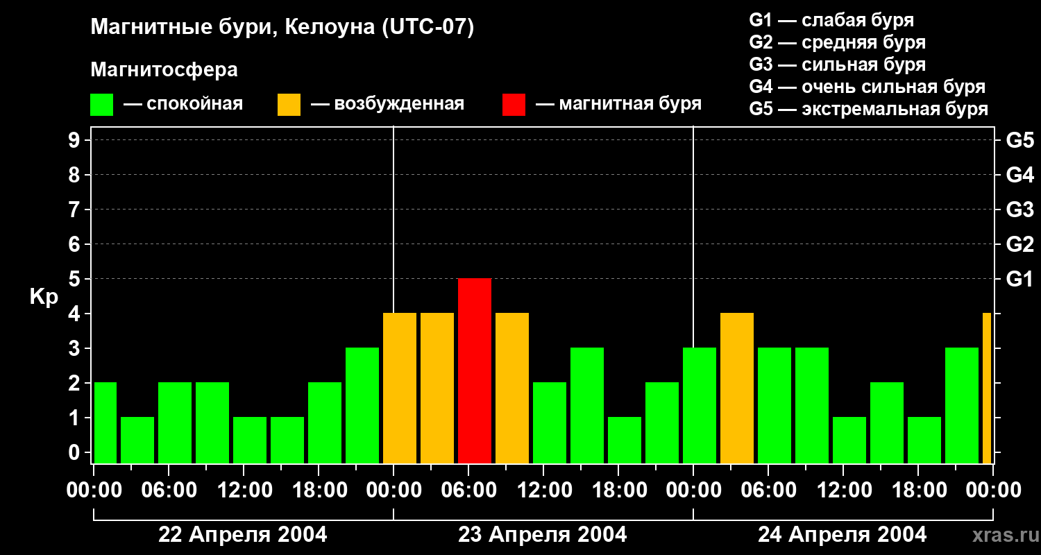 Магнитные бури в Келоуне — 24 апреля 2004 года
