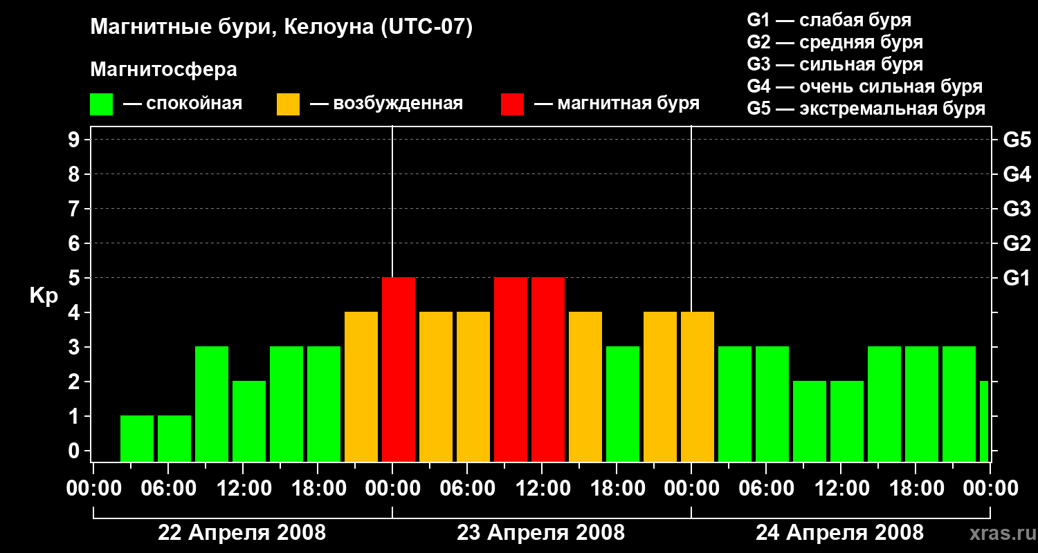 Магнитные бури в Келоуне — 24 апреля 2008 года