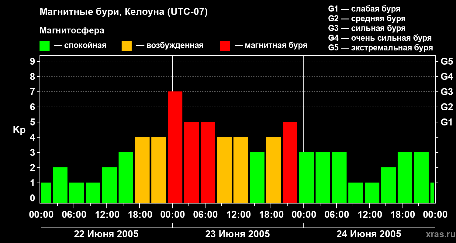 Магнитные бури в Келоуне — 24 июня 2005 года