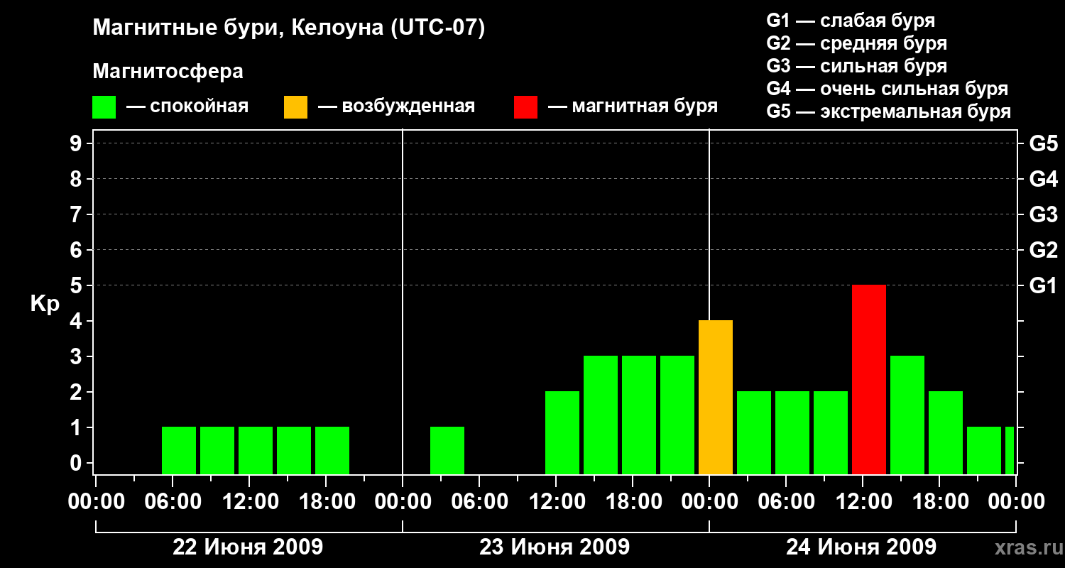 Магнитные бури в Келоуне — 24 июня 2009 года