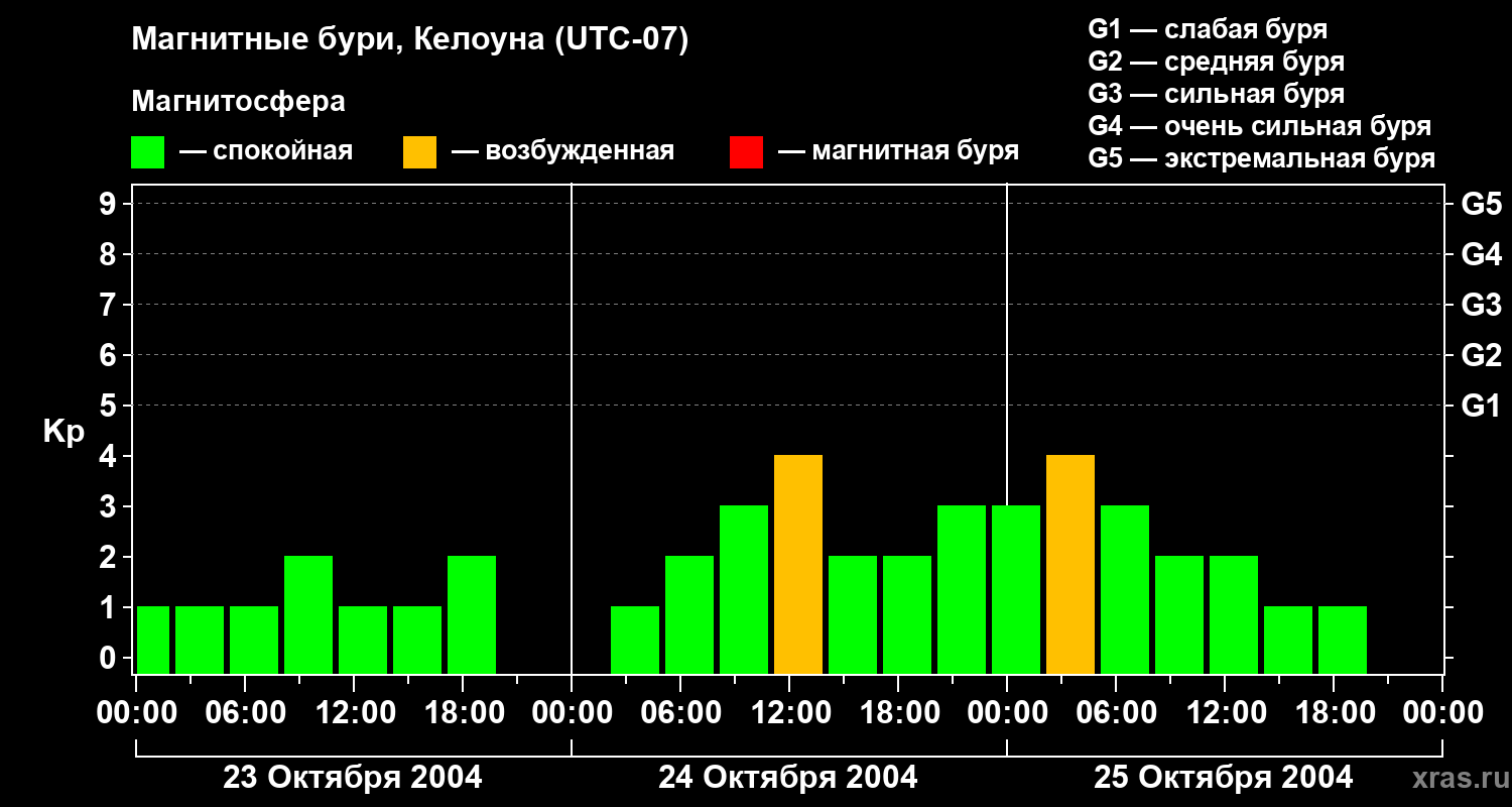 Магнитные бури в Келоуне — 25 октября 2004 года